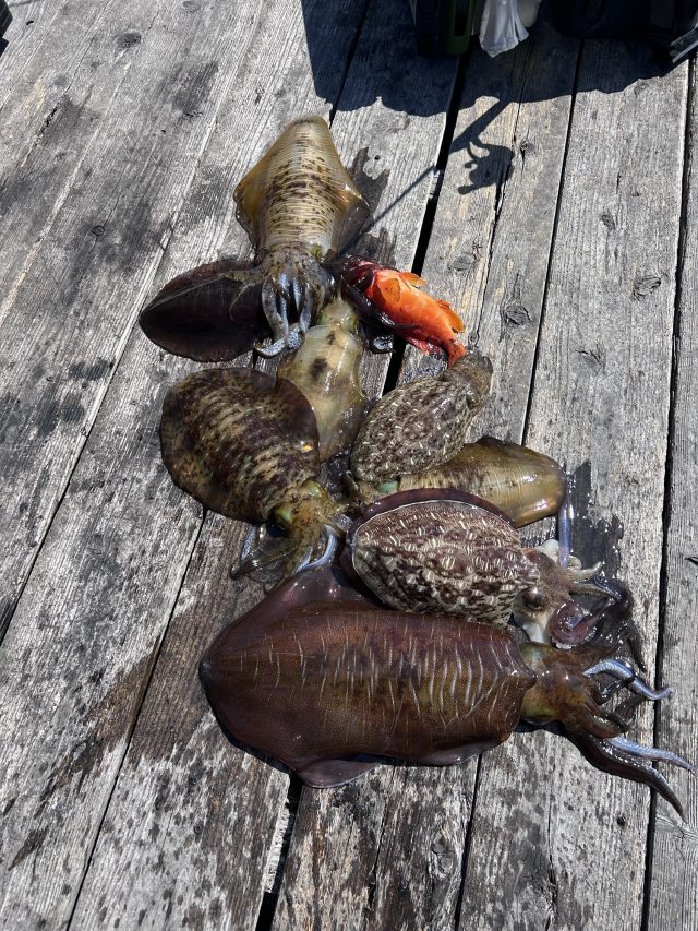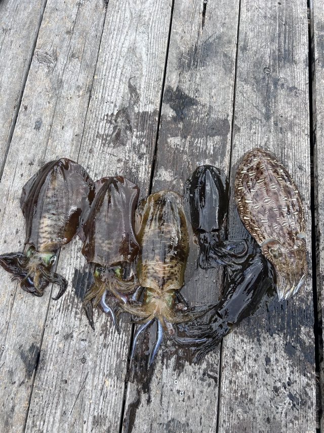 アオリイカ6杯、コウイカ2杯 この時期にしてはよく取れました! MAX2.5キロ!!お疲れ様でした -