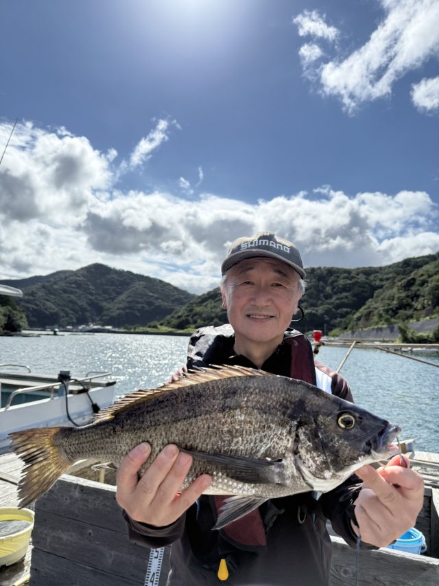 京都の木原さん! ニラ浜の筏で43cm1枚ゲット! エサはオキアミでした! -