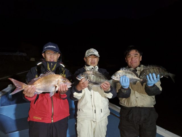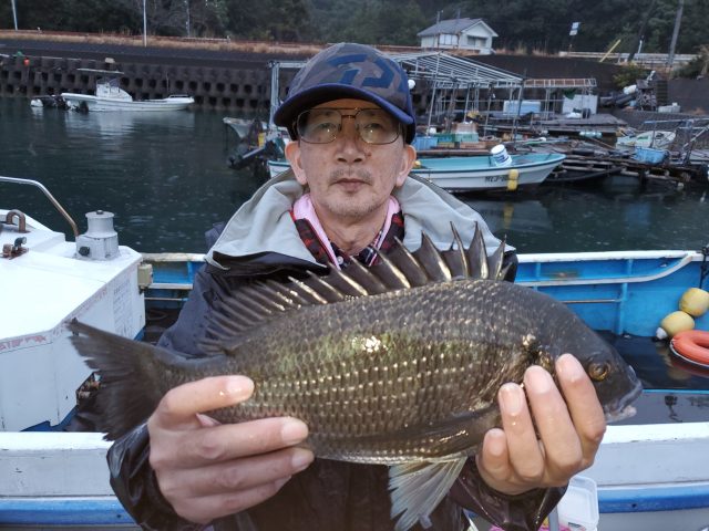 京都の燻銀会の皆様 ニラ浜の筏で チヌ35~42㎝3枚 エサ オキアミ いいサイズの真鯛です❗