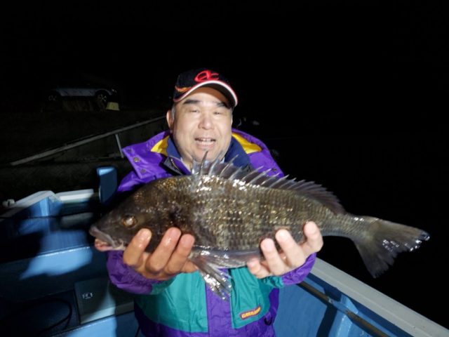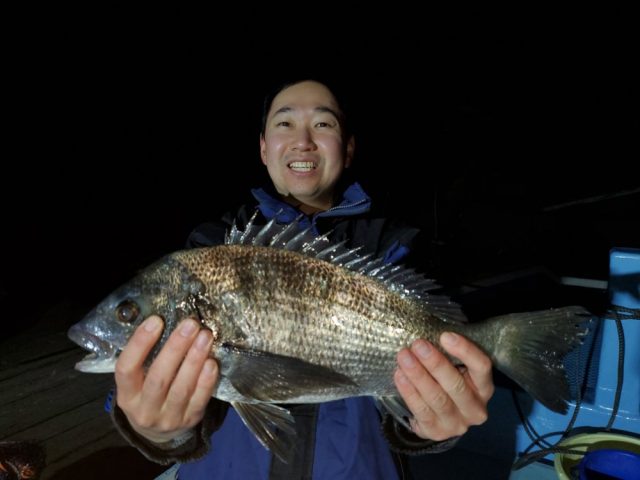 豊田市の大野さん ニラ浜の筏で チヌ43㎝ エサ オキアミ