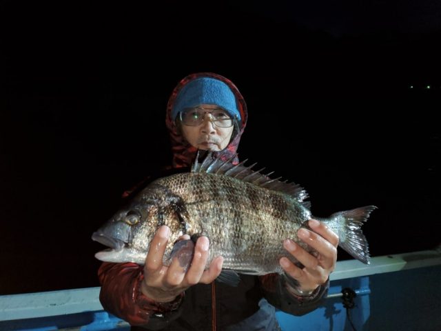 名古屋市の近藤さん 西浦の筏で チヌ43~46㎝5枚 エサ オキアミ