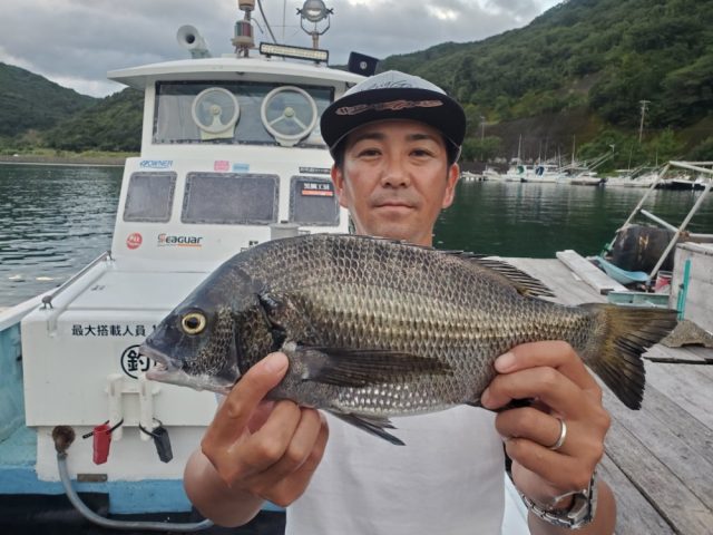 尾鷲市の杉本さん 名倉の筏で チヌ39cm エサ オキアミ