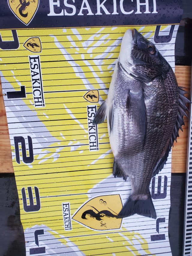 大阪の藤野さん 真珠跡筏で チヌ42cm エサ サナギ