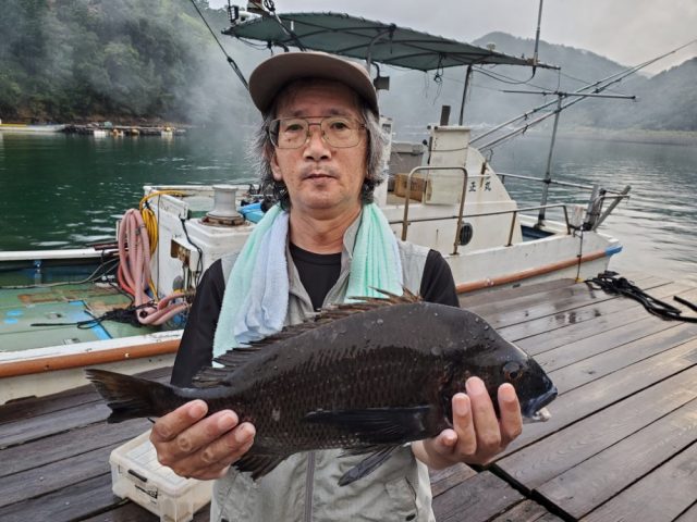 三好市の鈴木さん 真珠跡筏で チヌ35~47cm2枚 エサ サナギ